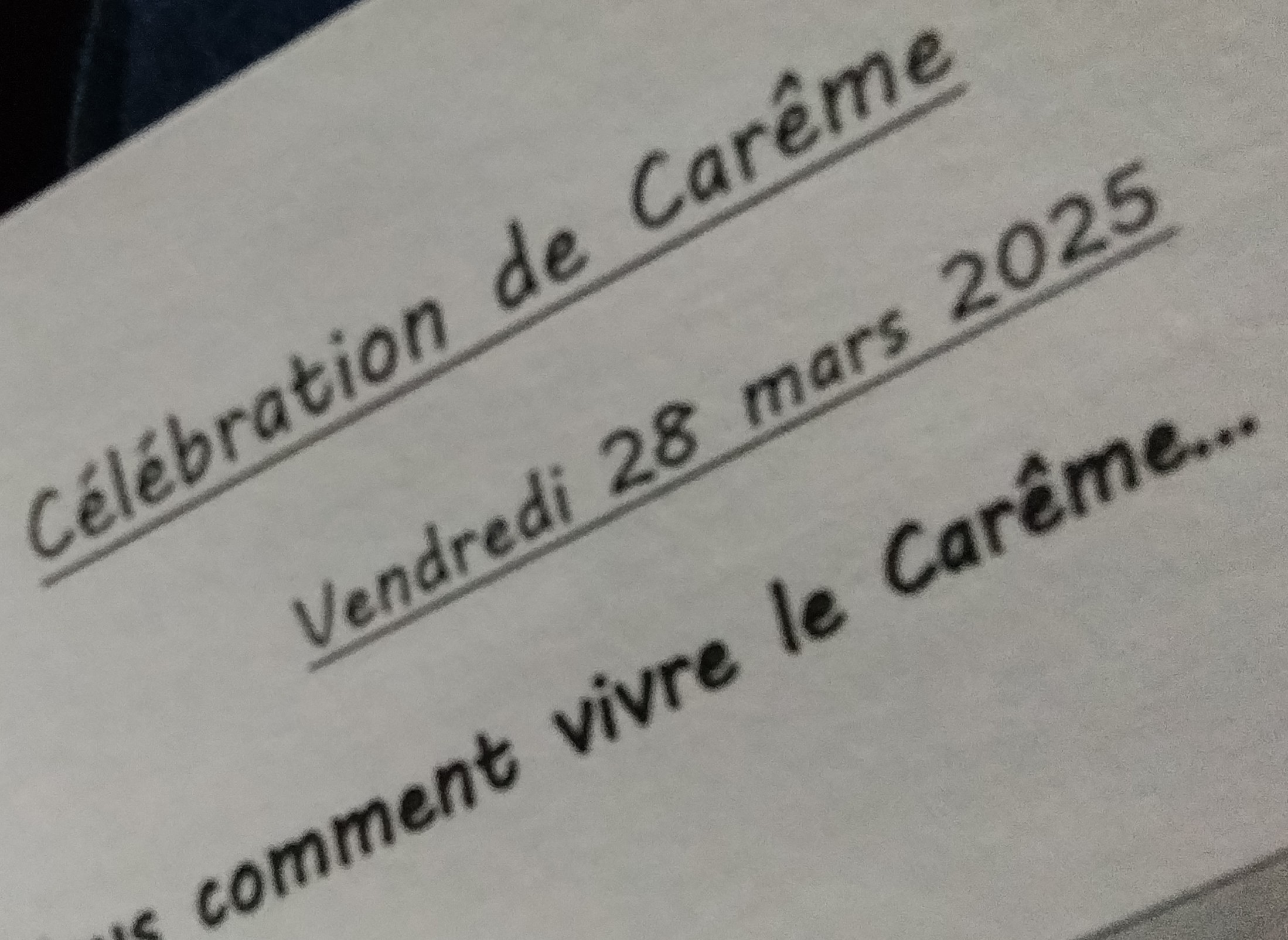 En ce vendredi 28 mars 2025, toute l’école St Pierre s’est réunie pour célébrer la mi-Carême. Le père Verkys, Chritine Jorel, les deux catéchistes de l’école (Christine et Martine) nous ont rejoints pour partager ce moment.