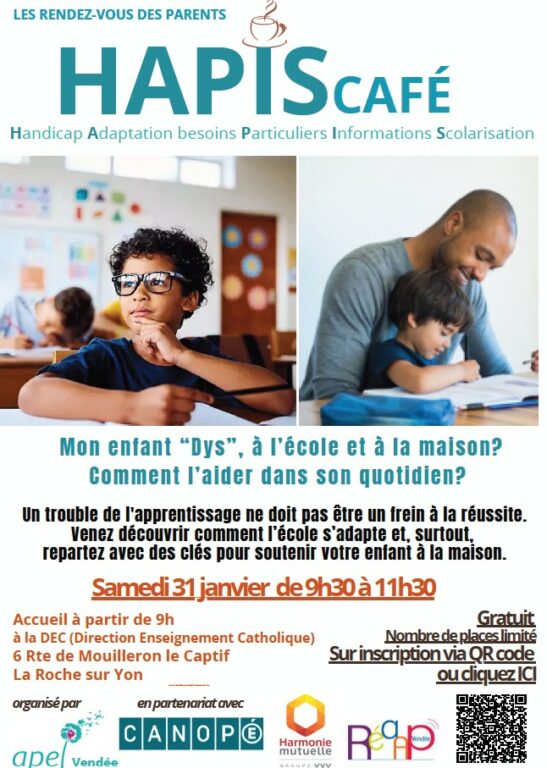 31 janvier de 9h30 à 11h30 et aura pour thème: Mon enfant “DYS”, à l’école, à la maison? Comment l’aider dans son quotidien ? Un trouble de l’apprentissage ne doit pas être un frein à la réussite. Venez découvrir comment l’école s’adapte et, surtout, repartez avec des clés pour soutenir votre enfant à la maison. Inscription obligatoire ICI