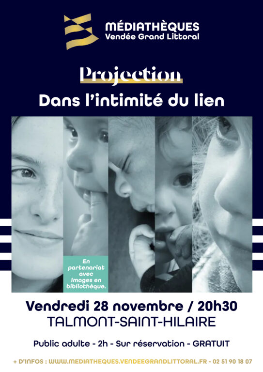 Dans ce cadre, la médiathèque Aliénor propose la projection du film Dans l’intimité du lien d’Anne JOCHUM (2021). Ce documentaire explore la construction du lien d’attachement, essentiel au développement de l’enfant et à sa relation au monde. À travers les témoignages de spécialistes et d’adultes de tous âges, il montre comment ces premiers liens se créent, évoluent et peuvent parfois se fragiliser, notamment à l’adolescence, période charnière pour consolider ou éprouver la solidité des relations.