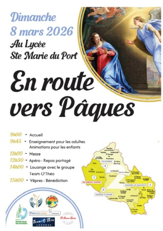 Le Doyenné des Sables (4 paroisses : Notre Dame des Achards, Ste Marie des Sables, St Jacques de Moutiers et St Henri Dorie de Talmont) organise un temps de fête, de réflexion pour nous préparer à Pâques.